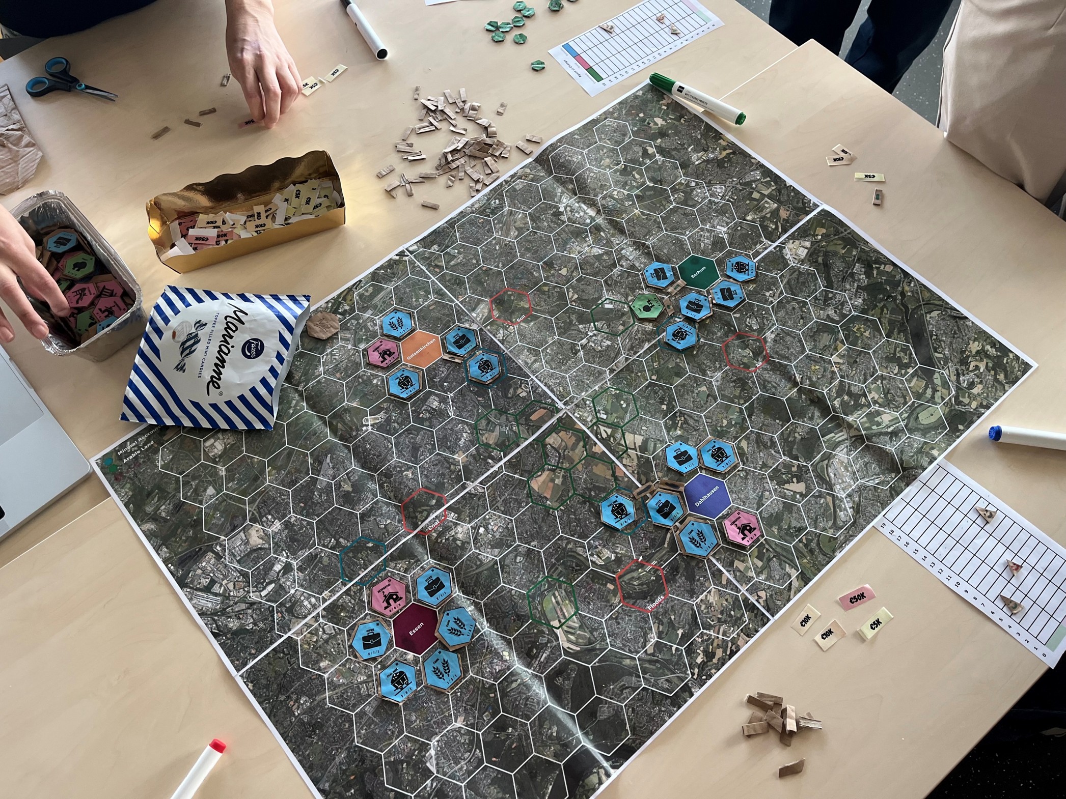 Image: Liisi’s group’s regional planning board game. And some Finnish Marianne candies as refreshments 😀
